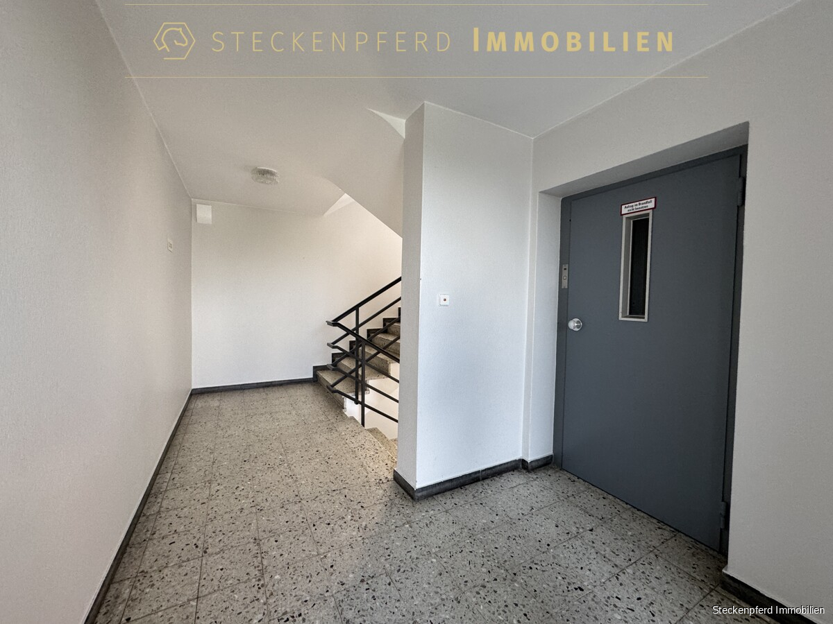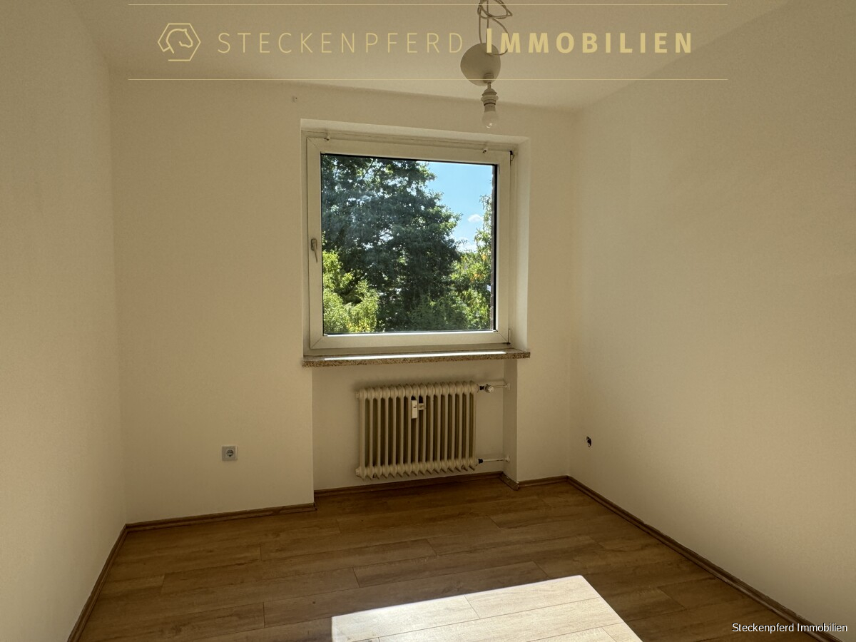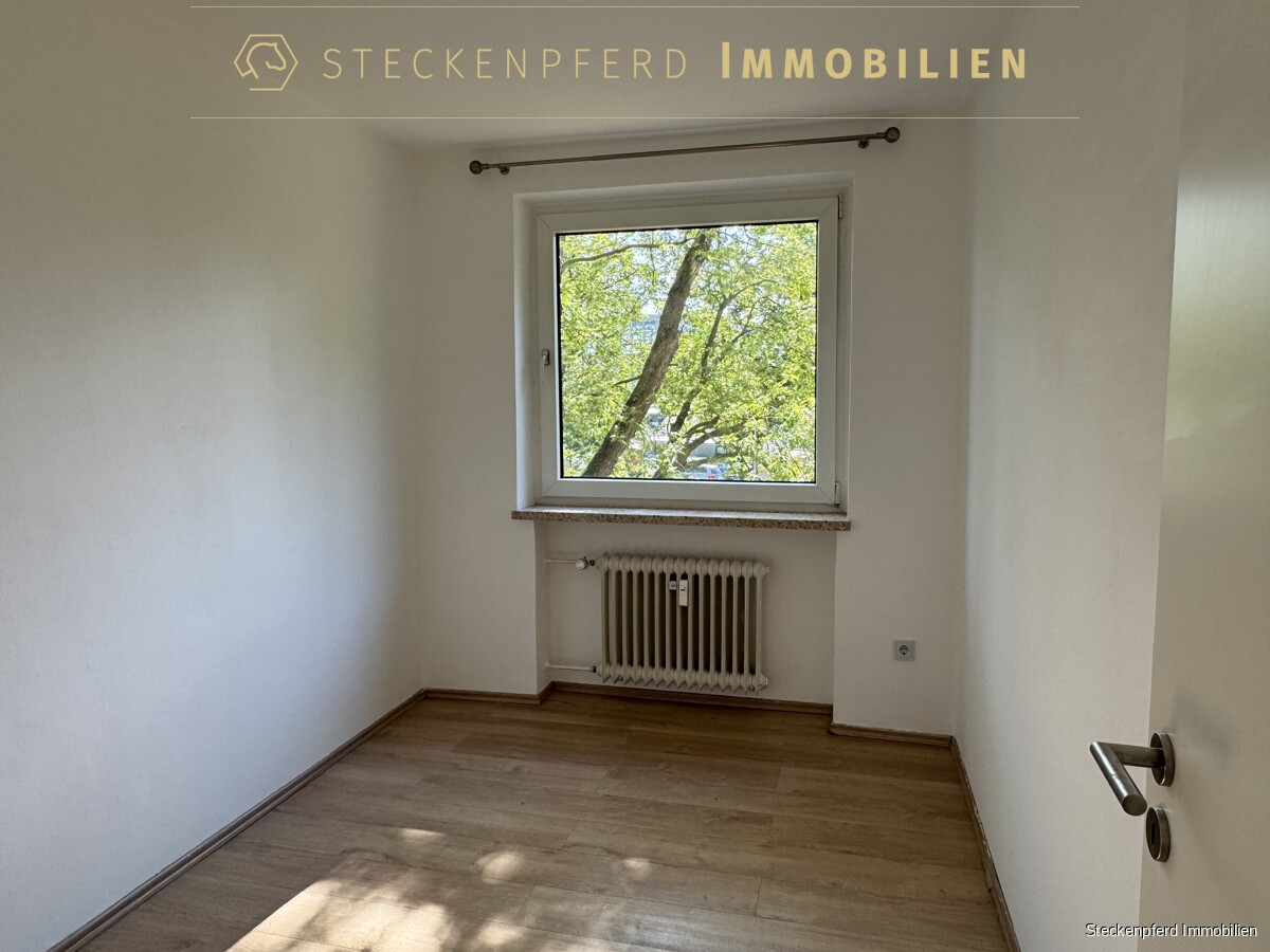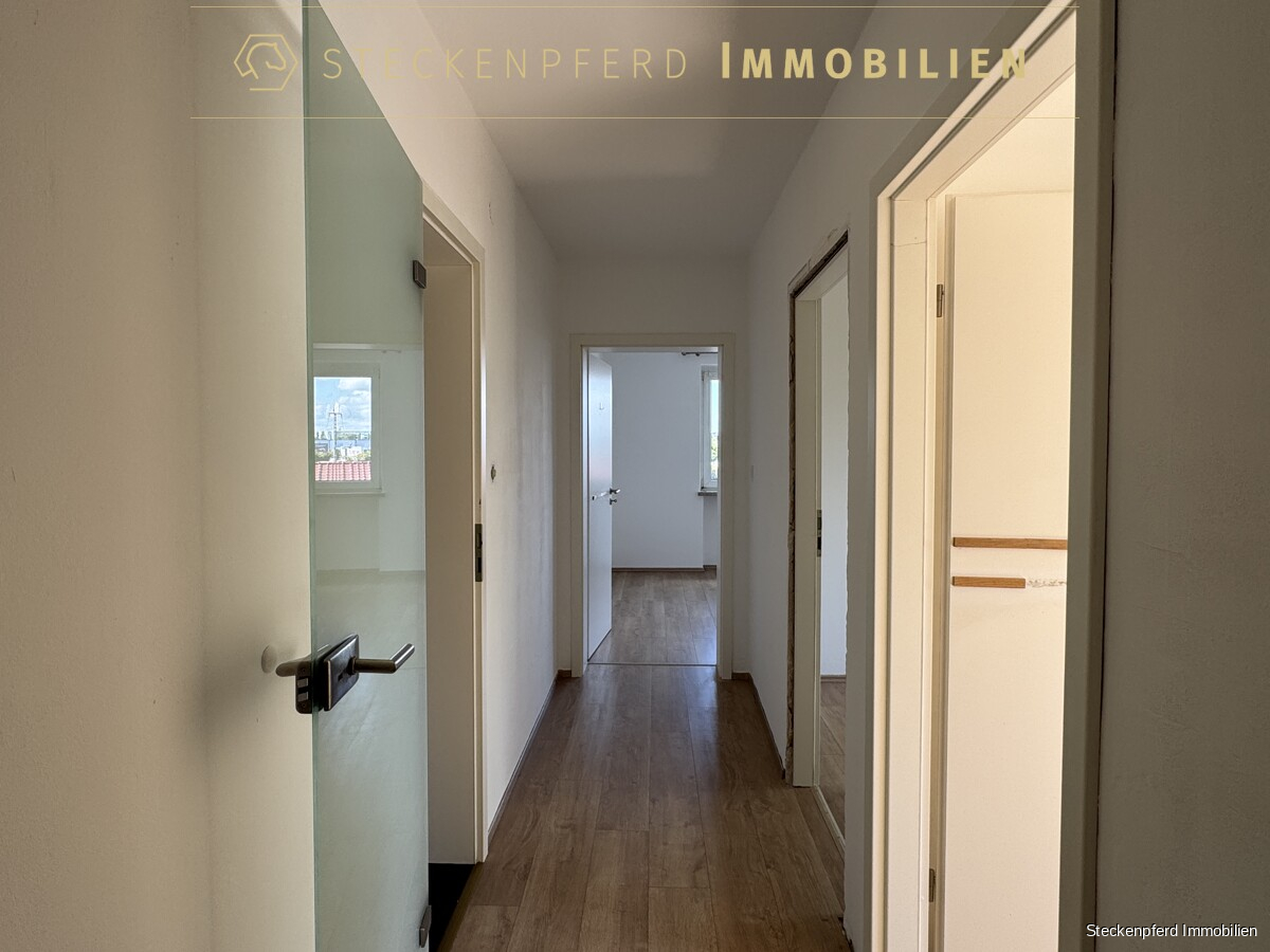 Sondereigentum (in der Wohnung): -ca. 107 m² Wohnfläche, aufgeteilt auf 4,5 Zimmer -drei separate Schlafzimmer sowie ein großzügiges Wohnzimmer -halbes Zimmer durch den weiten Flurbereich, vielseitig nutzbar -zwei Balkone mit unterschiedlichen Ausrichtungen -funktionale Einbauküche in heller, schlichter Ausführung -Eingangsbereich mit Garderobenschrank -modernes Wannenbad (saniert) -separates Gäste-WC -Kunststofffenster mit weißer Doppelverglasung -Laminat- und Fliesenböden -privater Kellerraum