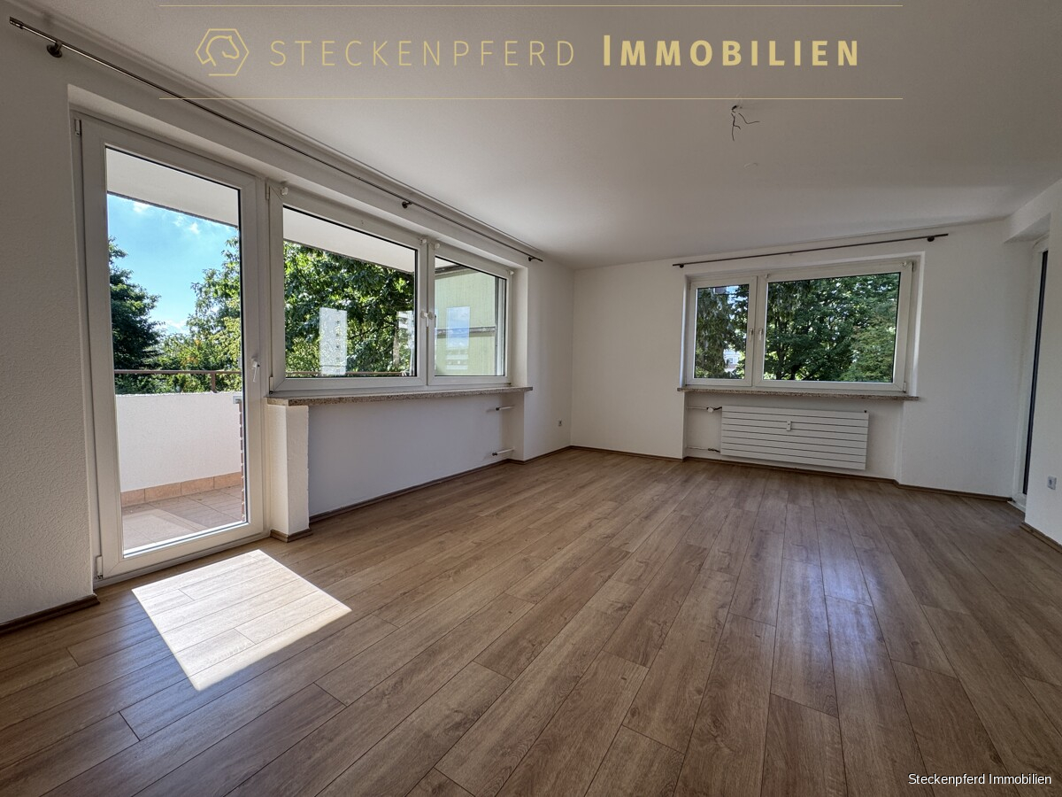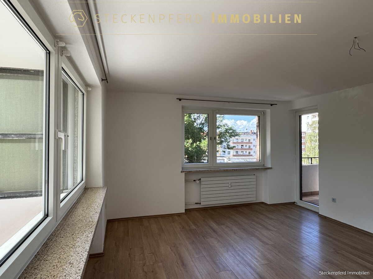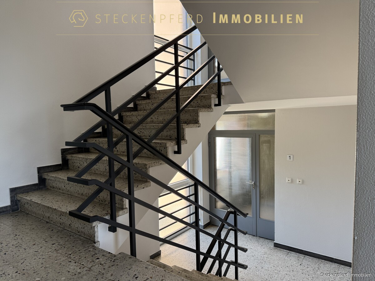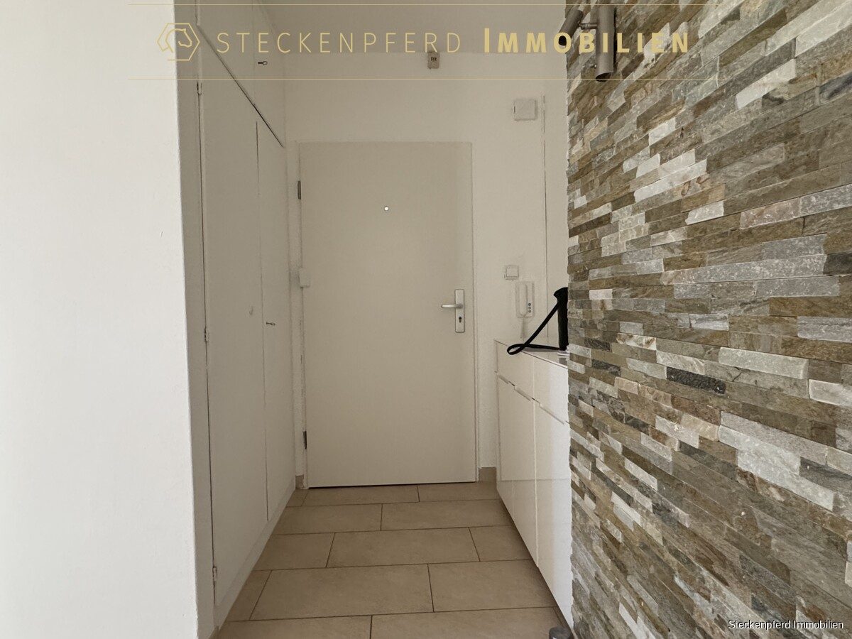 Sondereigentum (in der Wohnung): -ca. 107 m² Wohnfläche, aufgeteilt auf 4,5 Zimmer -drei separate Schlafzimmer sowie ein großzügiges Wohnzimmer -halbes Zimmer durch den weiten Flurbereich, vielseitig nutzbar -zwei Balkone mit unterschiedlichen Ausrichtungen -funktionale Einbauküche in heller, schlichter Ausführung -Eingangsbereich mit Garderobenschrank -modernes Wannenbad (saniert) -separates Gäste-WC -Kunststofffenster mit weißer Doppelverglasung -Laminat- und Fliesenböden -privater Kellerraum