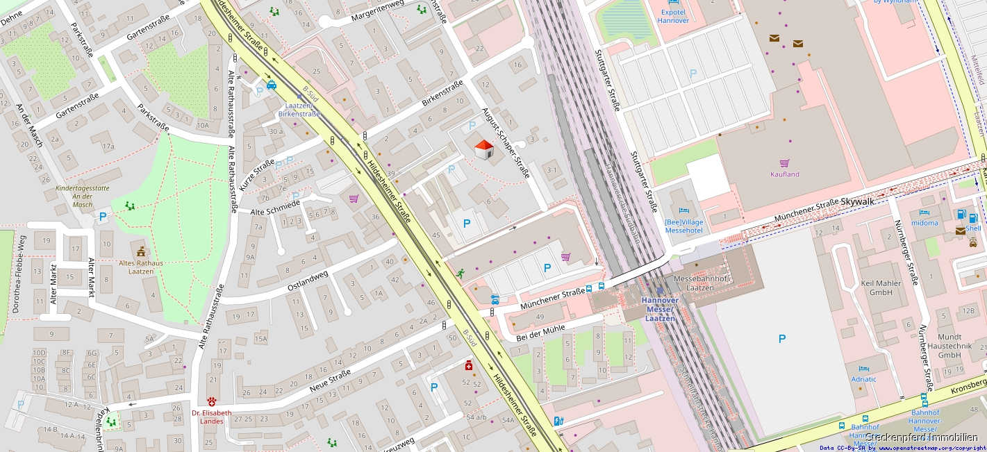 Die Anbindung an den öffentlichen Nahverkehr ist ausgezeichnet: In rund fünf Minuten erreichen Sie zu Fuß die Haltestelle Laatzen, Birkenstraße. Von dort fahren die Stadtbahnlinien 1 und 2 in etwa 15 Minuten direkt in die Innenstadt von Hannover – bequem und ohne Umsteigen. Auch das Messegelände liegt nur wenige Stationen entfernt. Mit dem Auto profitieren Sie von der Nähe zur B6 sowie zur Autobahn A7, wodurch eine schnelle Verbindung in alle Richtungen gewährleistet ist.