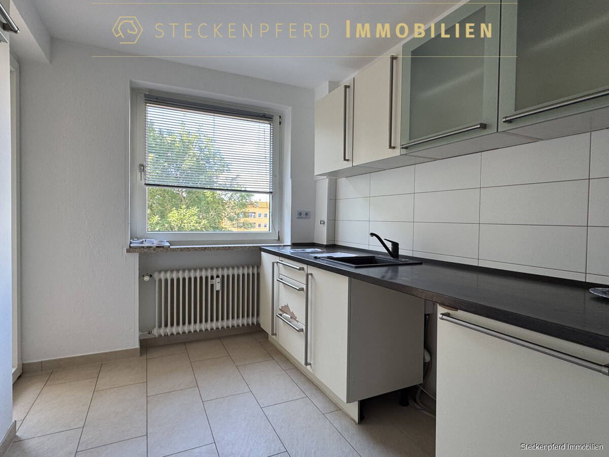 Die Küche ist funktional gestaltet und mit einer hellen, schlichten Einbauküche ausgestattet. Die Wohnung wurde in den letzten Jahren optisch aufgefrischt und hinterlässt einen modernen Eindruck. Gleichzeitig bietet sie Raum für weitere Modernisierungen, beispielsweise im Bereich der Elektrik – ideal für Käufer, die Wert auf eigene Gestaltung legen.