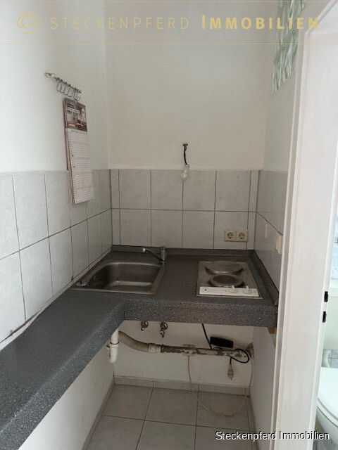 -Kompakte Küchenecke mit Herd und Spüle, ideal für die schnelle Zubereitung von Mahlzeiten